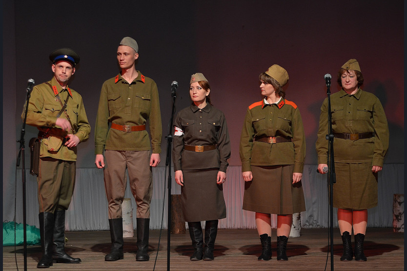 Творческую помощь оказали работники Дома культуры: Ринат Таипов в роли Деда Савелия, Елена Кардаш в роли первой сплетницы и работник музея Леонид Краснов, который сыграл роль прокурора Прыщёва. Спектакль с 10-ти минутным антрактом шел 2 часа. В зрительном зале царила напряженная тишина. Зал с волнением следил за актерской игрой. Действие в пьесе Н. Алкимова проходило в далеком селе центральной части России в довоенные, военные и послевоенные годы. В тылу тоже был свой фронт (бабий), когда женщины впрягались в непосильный труд. Чтобы помочь своим сыновьям, мужьям победить врага. Все жили одним девизом - «Все для фронта, все для Победы». В лирическом спектакле красной нитью, сквозным действием показан героический пример простой сельской женщины Марийки Уваровой, которая, не смотря на потерю мужа, не сломилась, выдержала все испытания и не растратила такое чувство, как любовь.